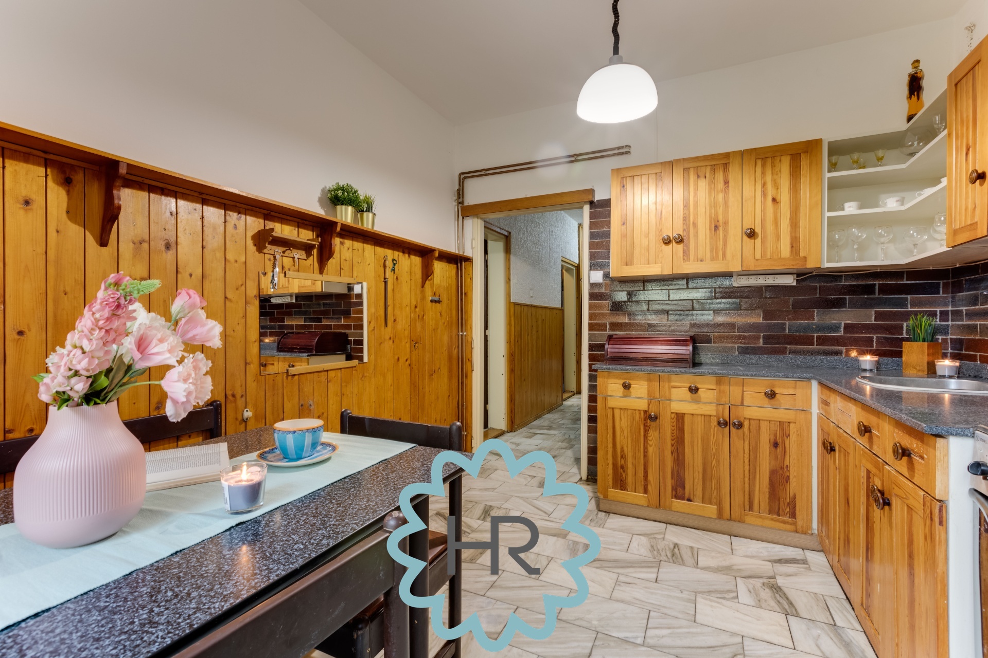 Kuchyň je vybavena veškerými spotřebiči: lednice, digestoř, trouba, sporák, myčka, atd.