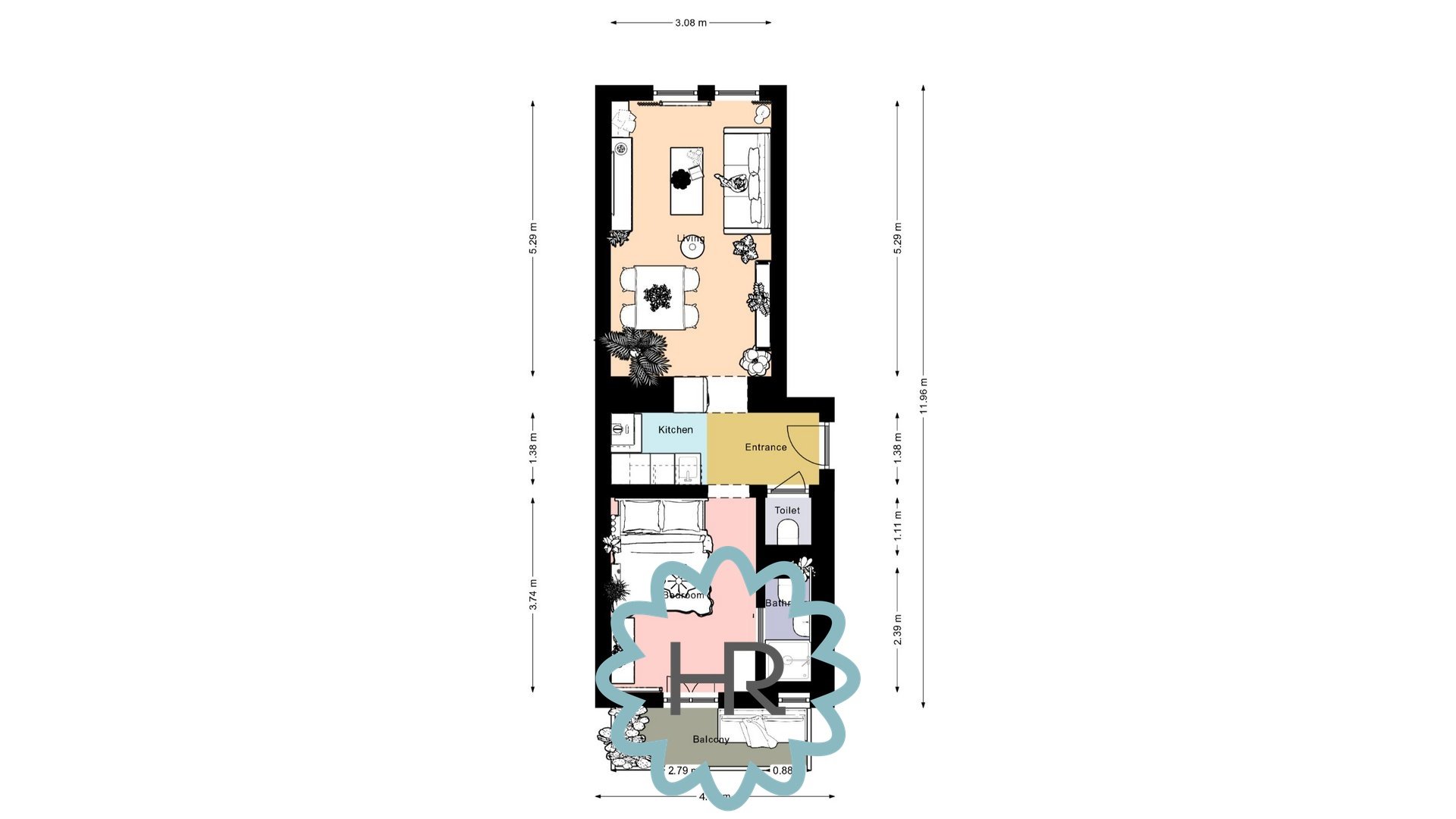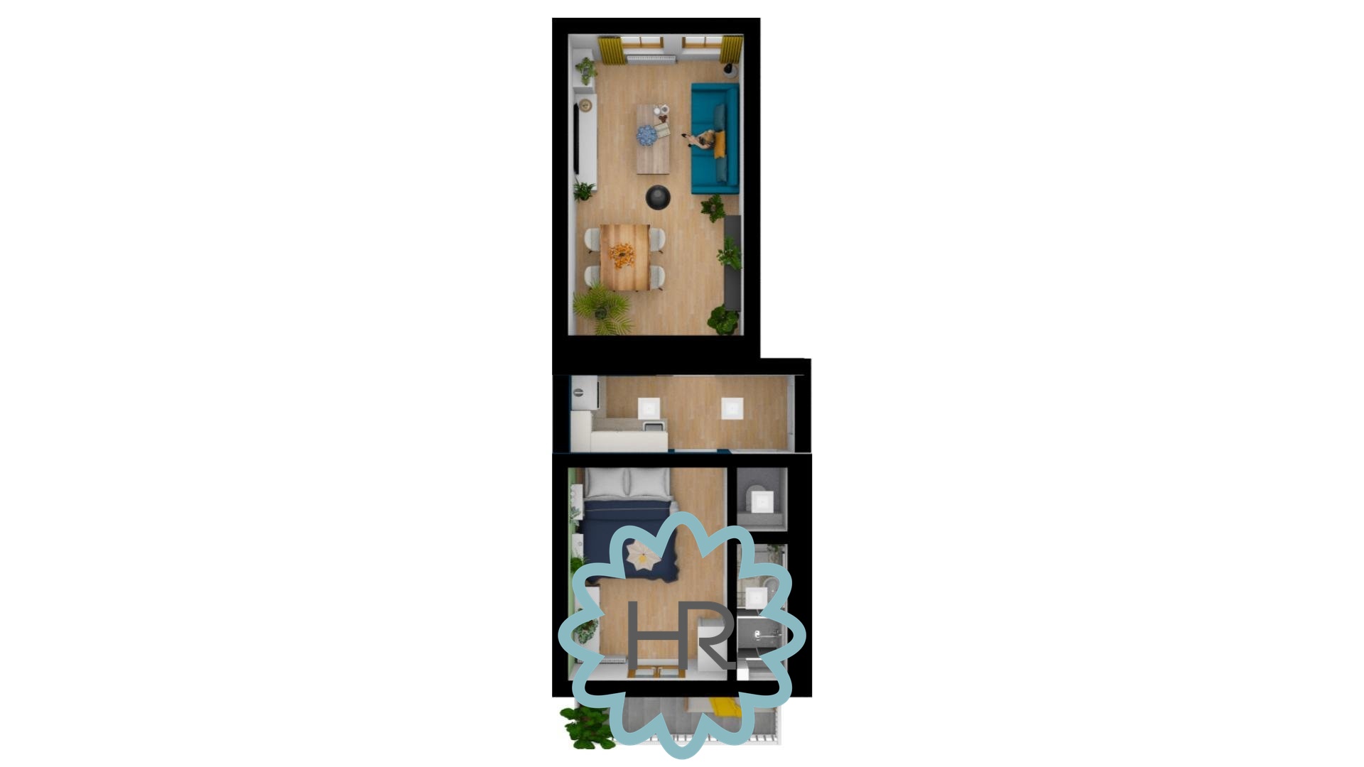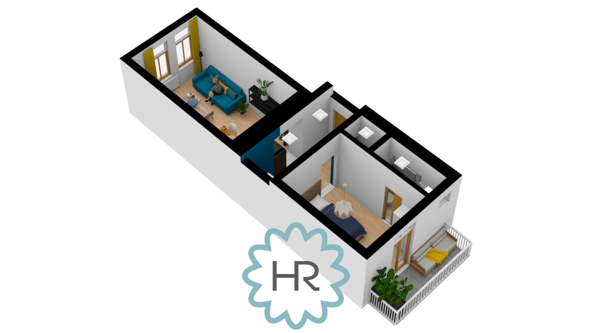 Byt je kompletně zařízený a jeho součástí je kuchyně, obývací pokoj, samostatná ložnice s prostorným balkónem s výhledem do vnitrobloku, koupelna se sprchovým koutem a WC, komora.