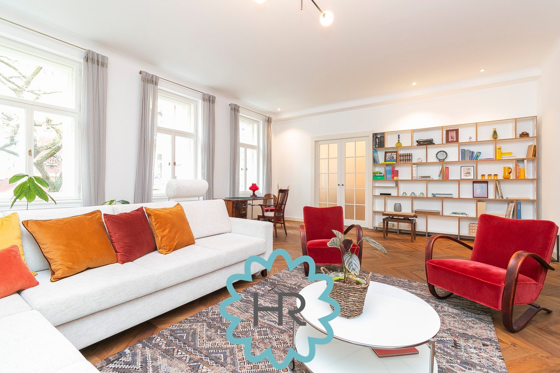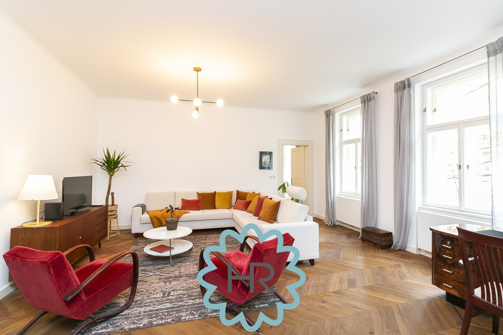 Nabízíme pronájem zařízeného bytu 4+1 (155m2) se 3 balkóny (2x 2m2, 1x 4m2).